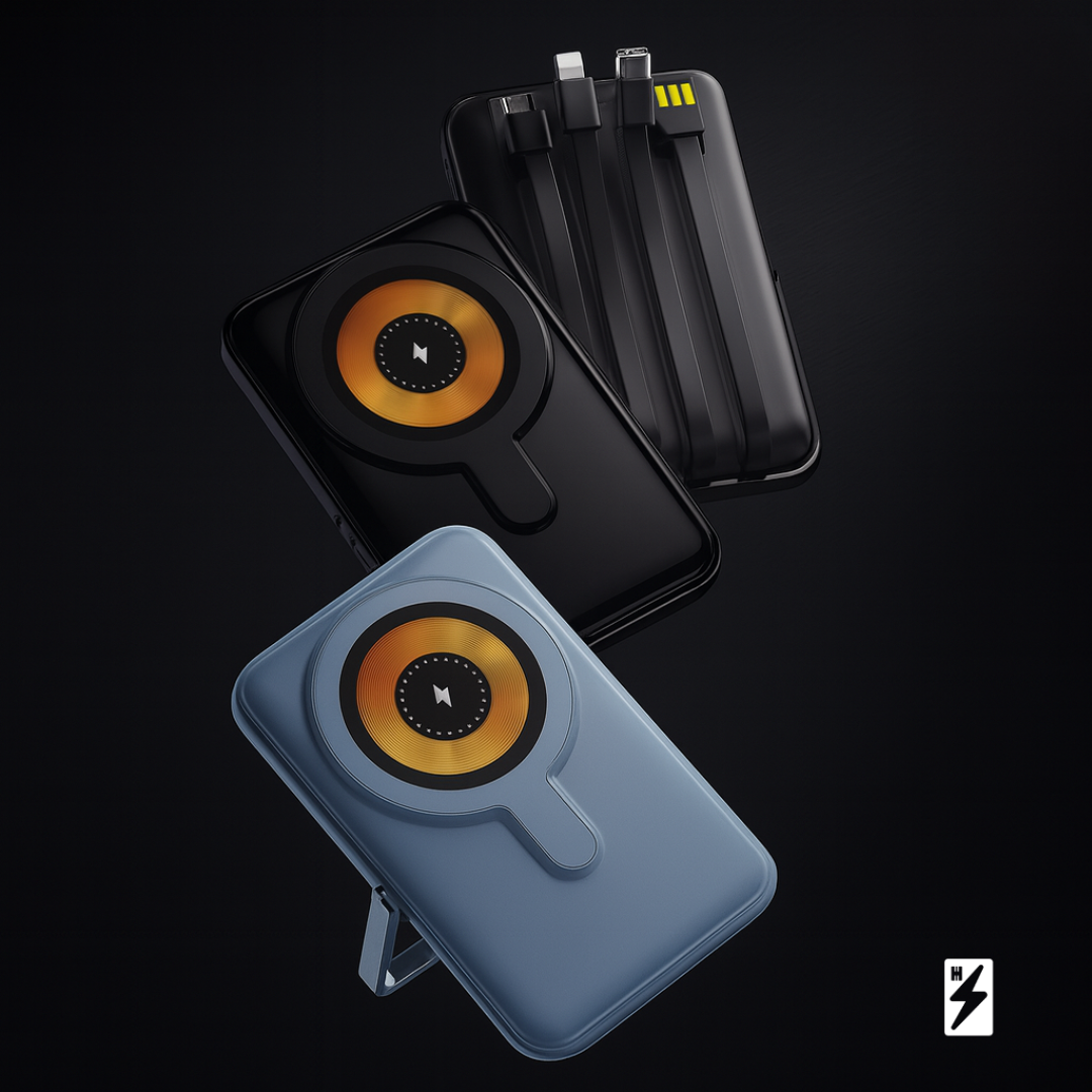 What sets it apart is the magnetic charging with built-in stand, giving you a seamless hands-free experience while powering your phone. Perfect for video calls, streaming, or working on the go. Combined with its LED battery display, water-resistant ABS design, and universal compatibility, this compact power bank is ideal for outdoor use, travel, and everyday life.
